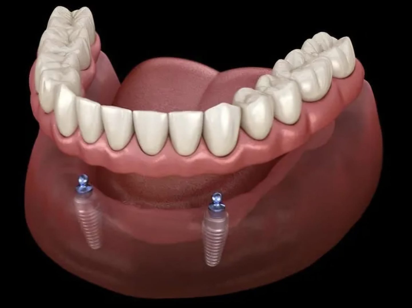 Prótese tipo dentadura que fica encaixada nos implantes mas pode ser removida.