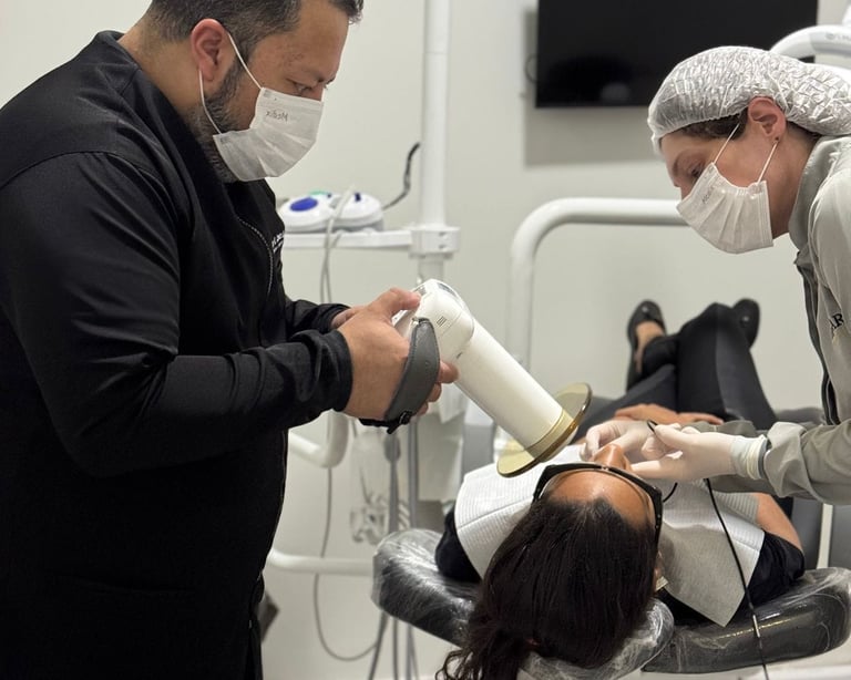 A tecnologia do raio X panorâmico traz mais rapidez e precisão ao diagnóstico odontológico. Na Clínica Dentari, esse exame permite visualizar toda a arcada dentária em uma única imagem, facilitando a identificação de problemas e o planejamento do tratamento.